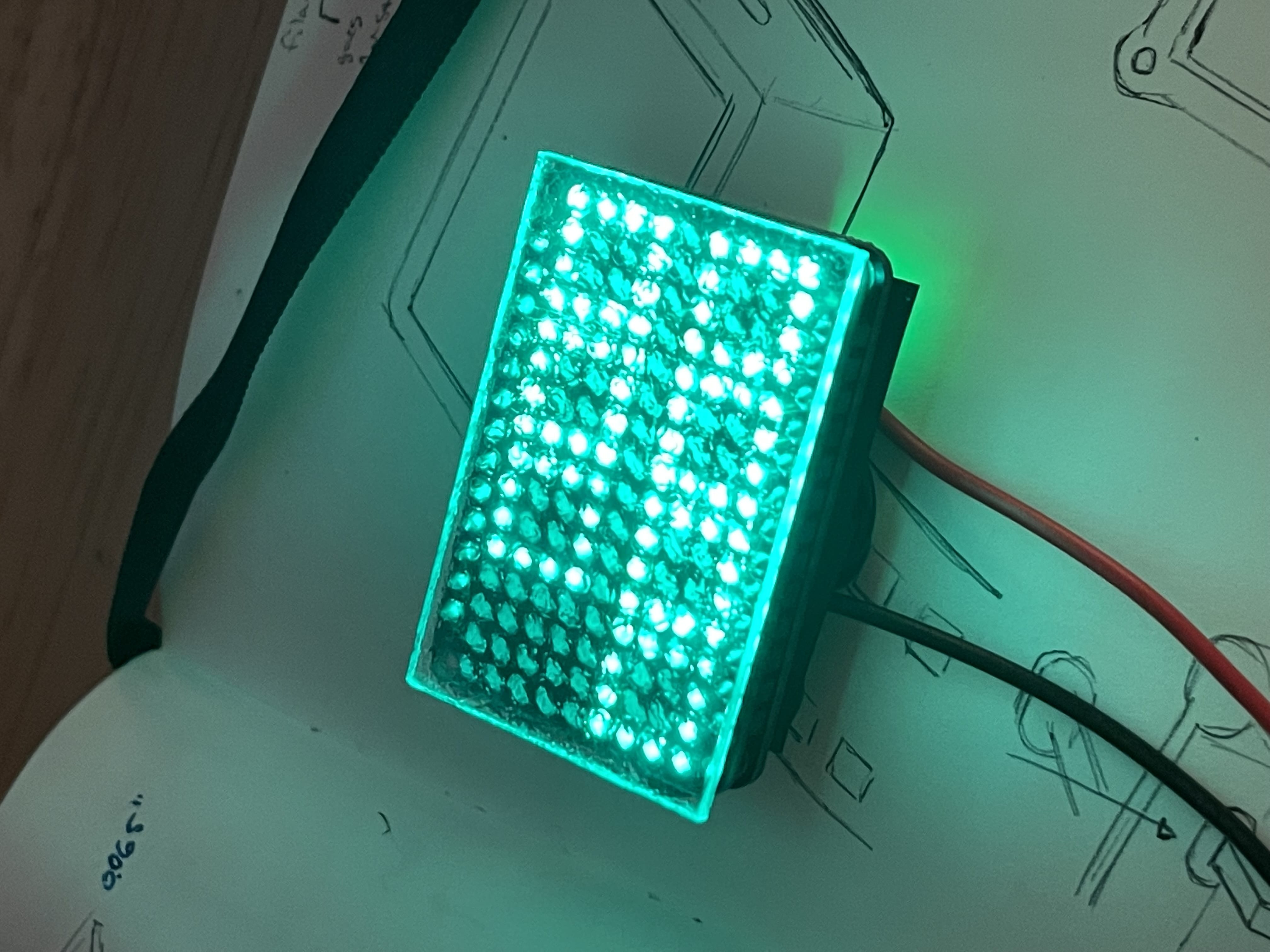 This project was an early experiment in wearables and fun ambient lighting. I found these fun tiny grids of LEDs with drivers that support PWM brightness control, and I wanted to experiment with it as an ultra-low-res display for dynamic graphics in a wearable.