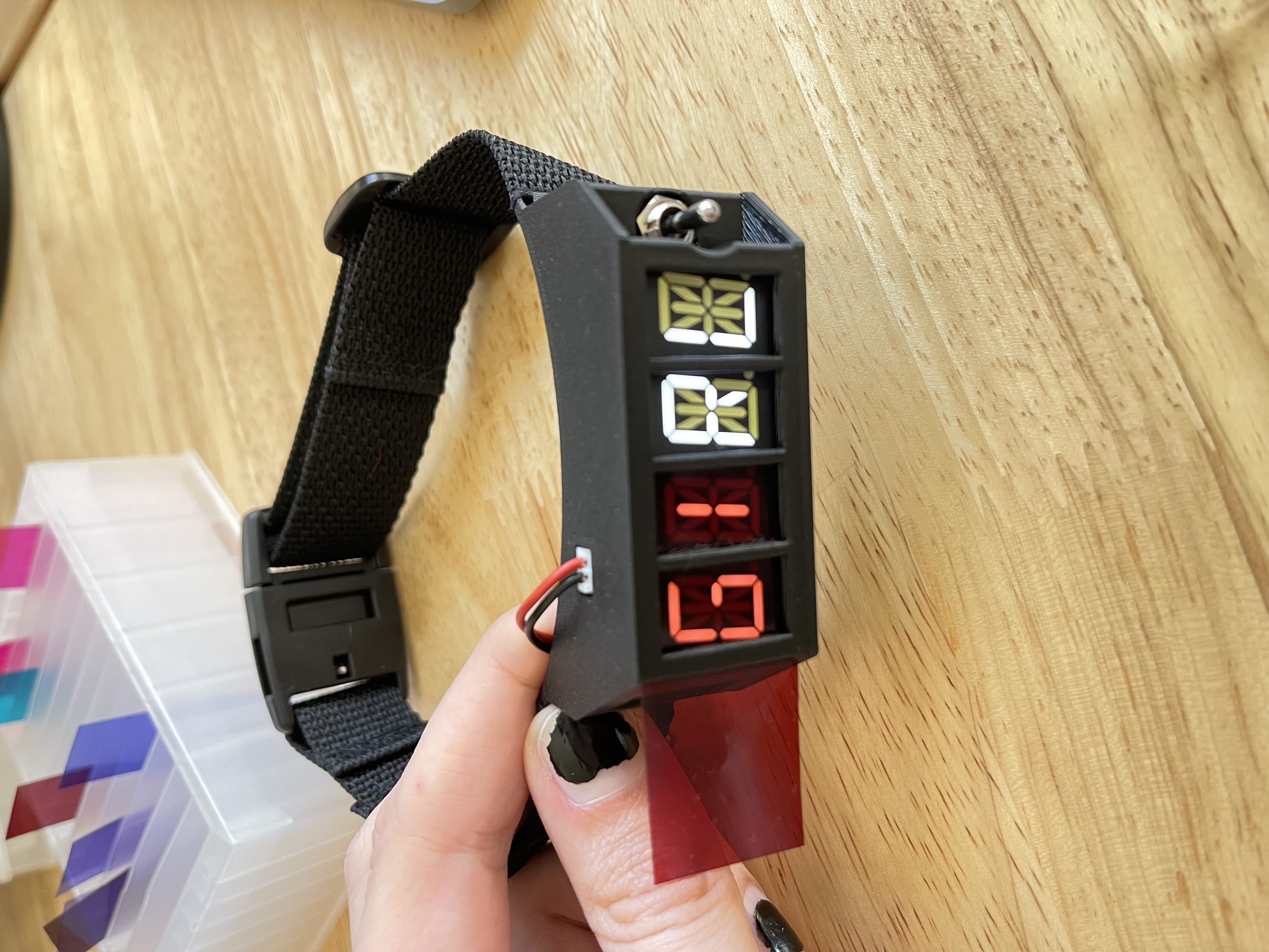 I'm considering doing another version using the e-textile techniques I experimented with in the later versions of the Cyberdemon Choker, and I think that might help make a version that's less bulky, since I could have the microcontroller off to the side of the display, rather than mounted beneath it. We'll see!