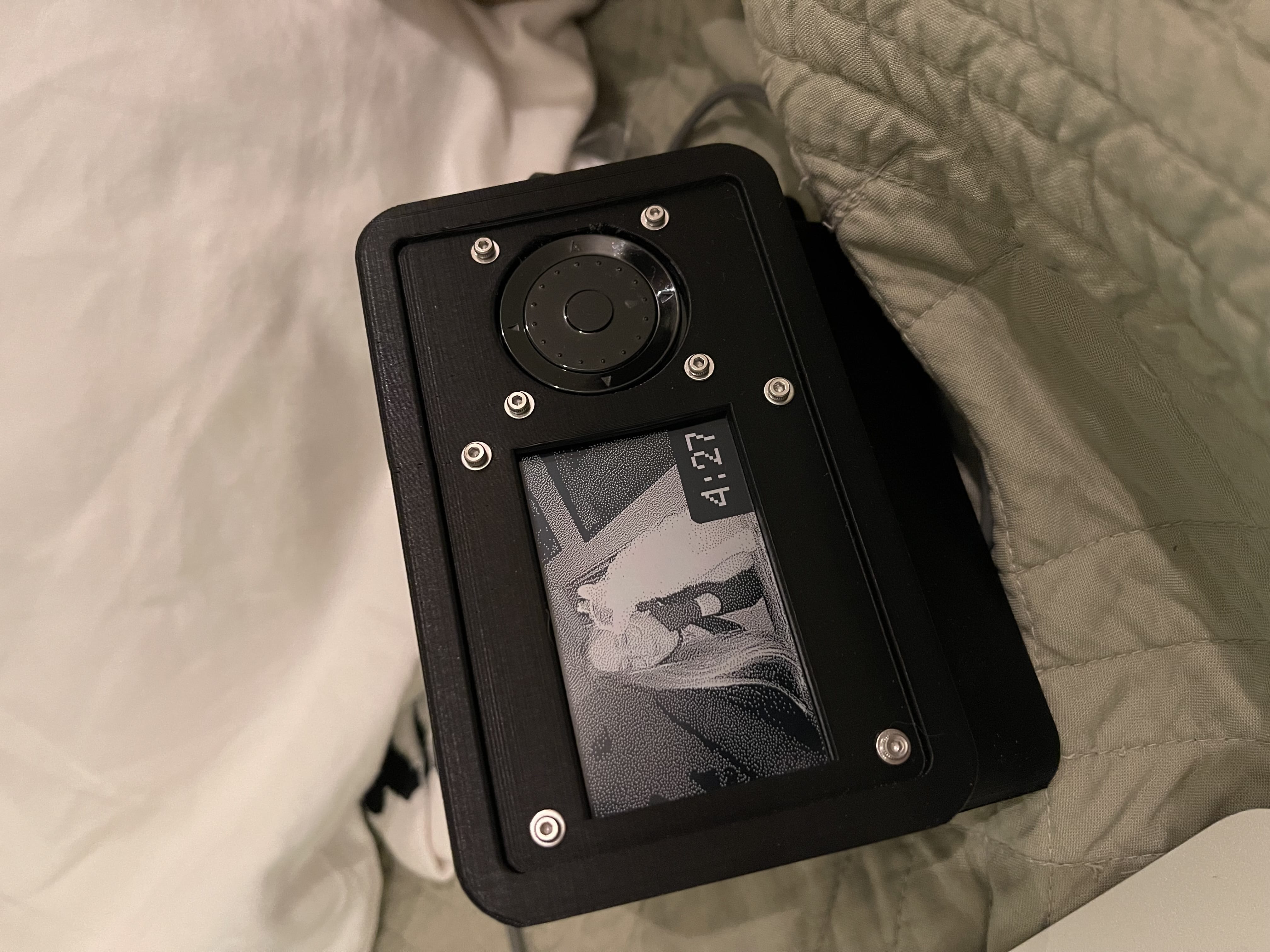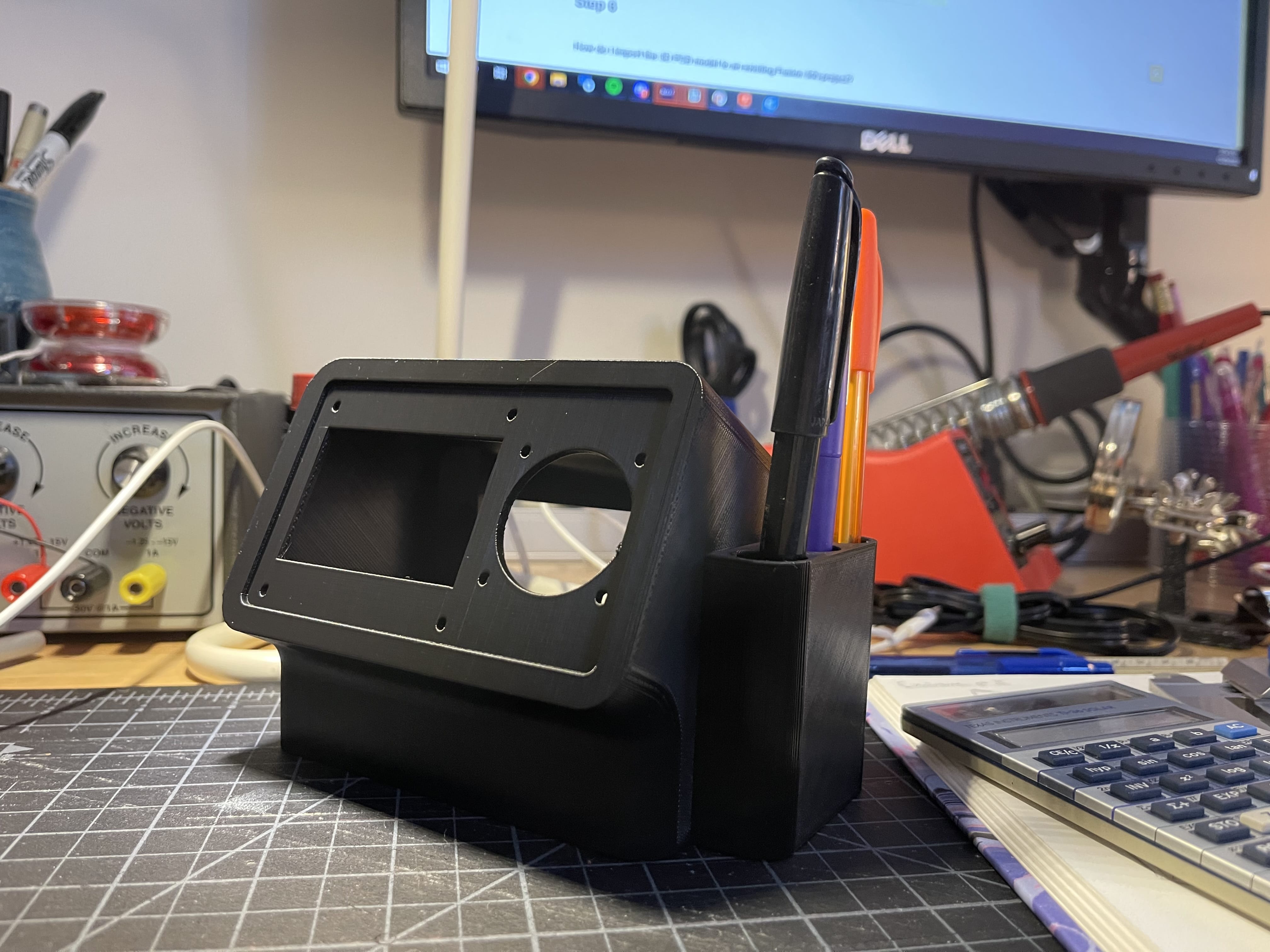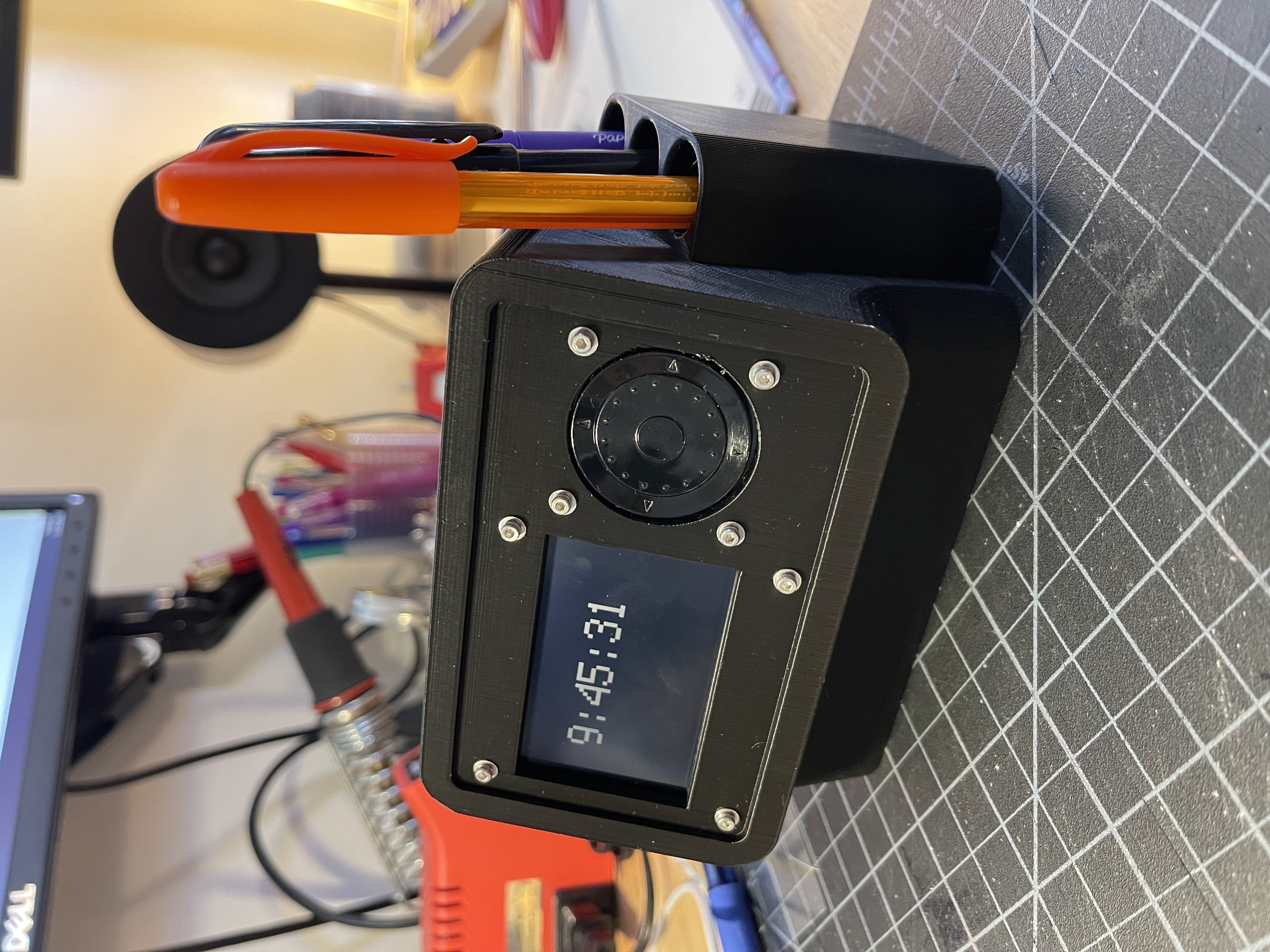 Once the print was finished, I stuffed the electronics in and secured the screen and encoder to the front of the enclosure with bolts. I think I would have liked these to be sunk into the case — a lesson for next time!