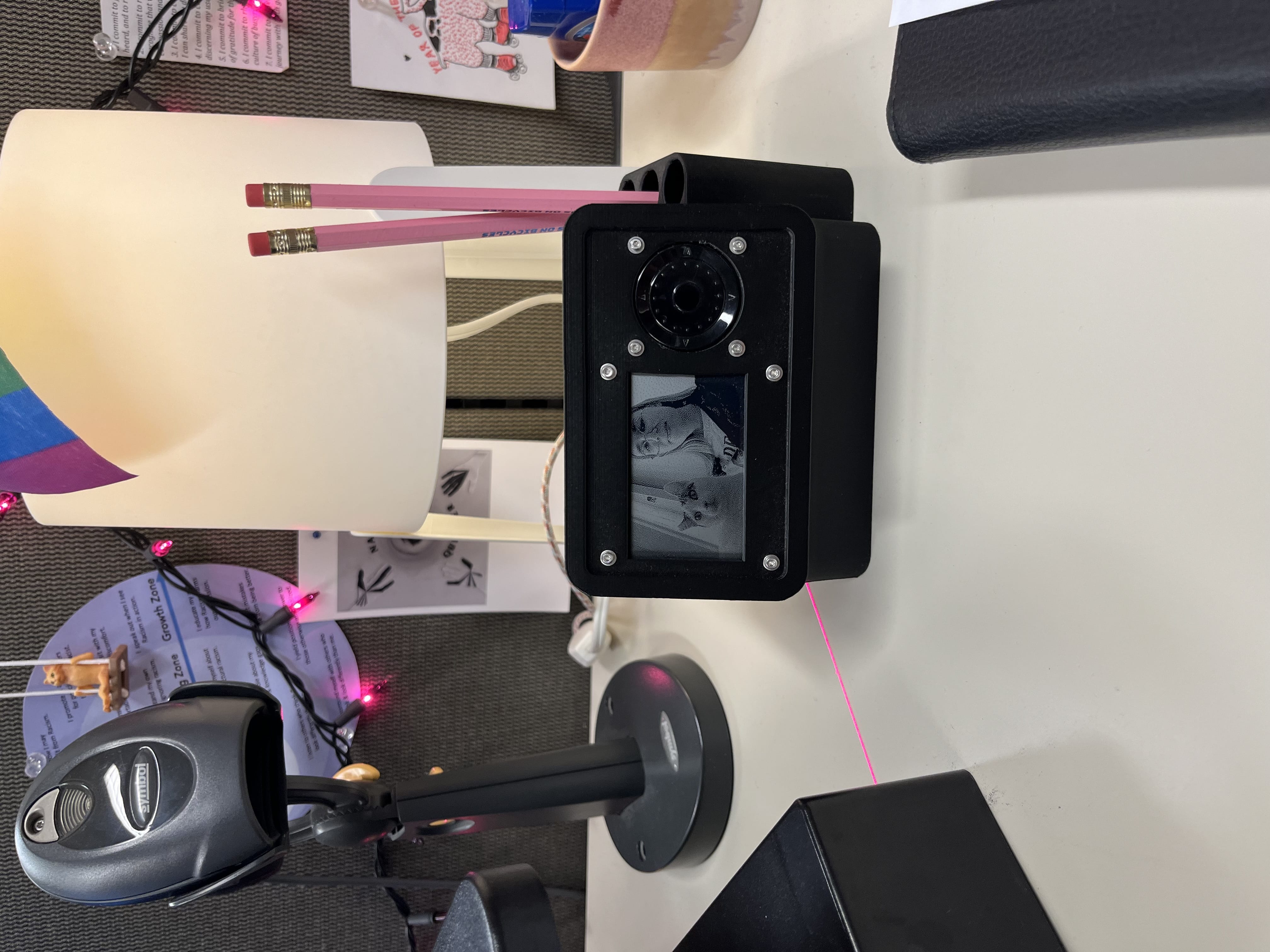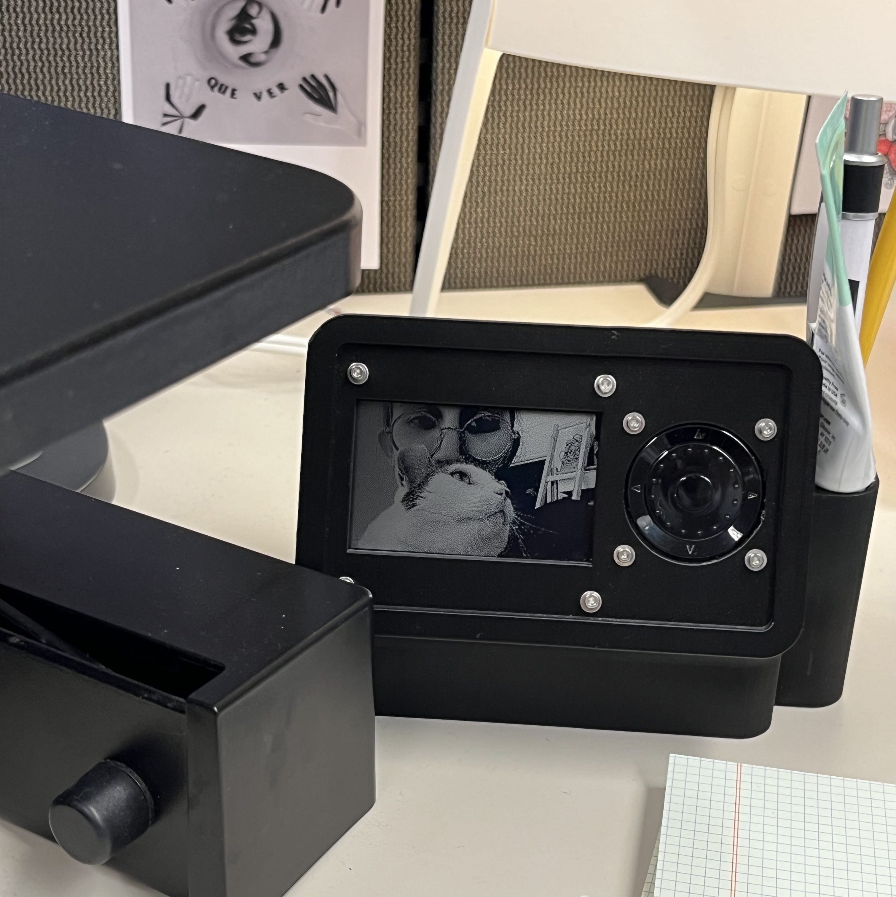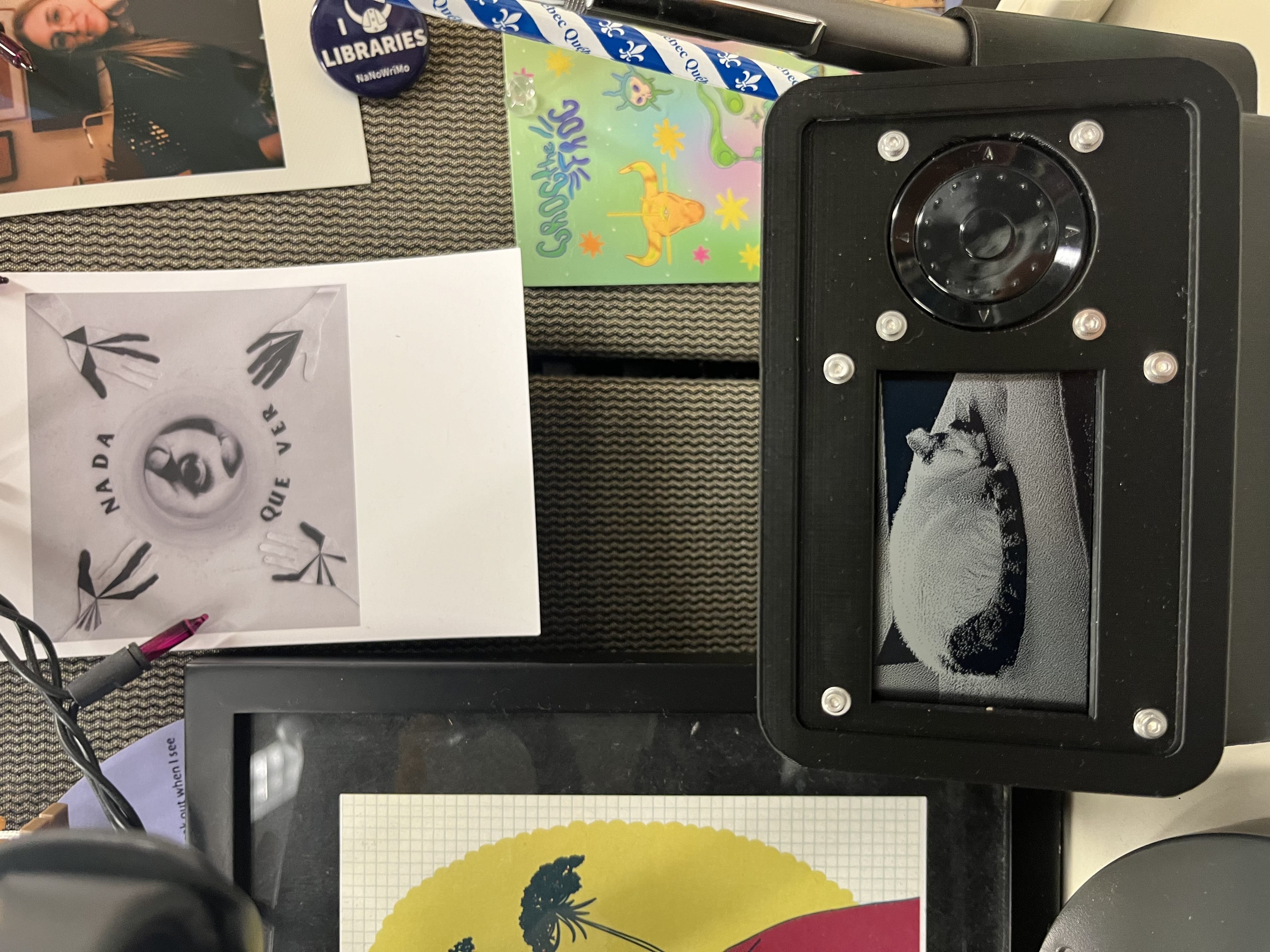 Then came the task of building the UI. Adafruit's displayio library makes it easy to build simple arrangements of text and shapes and bitmaps, so I went through their tutorials around displaying images, and got my dithered photos to show up!