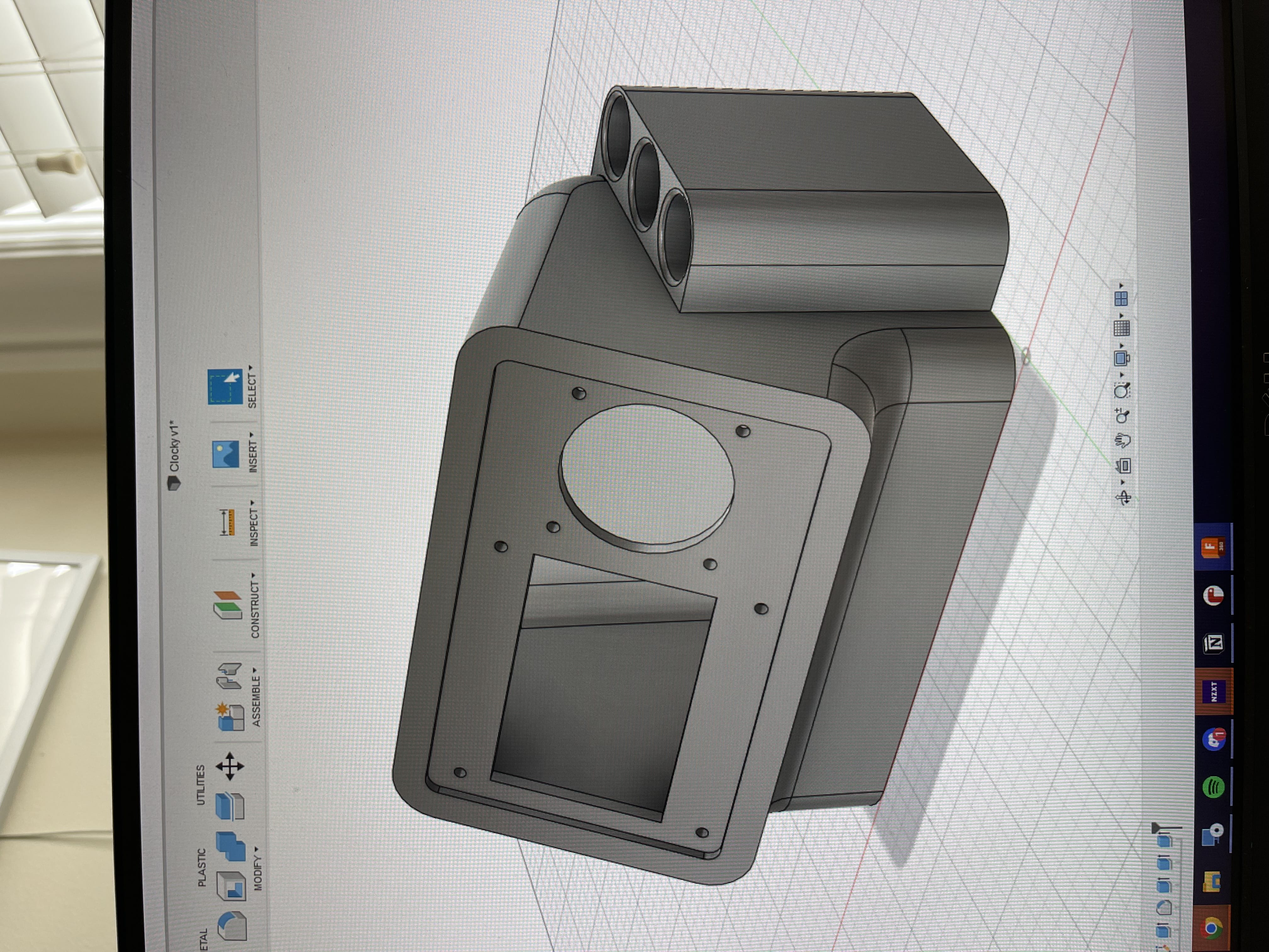The modeling was fairly straightforward once I had all the parts measured — it's mostly just one big shape with a door in the back to insert the circuitry. I printed it on its side in one go!