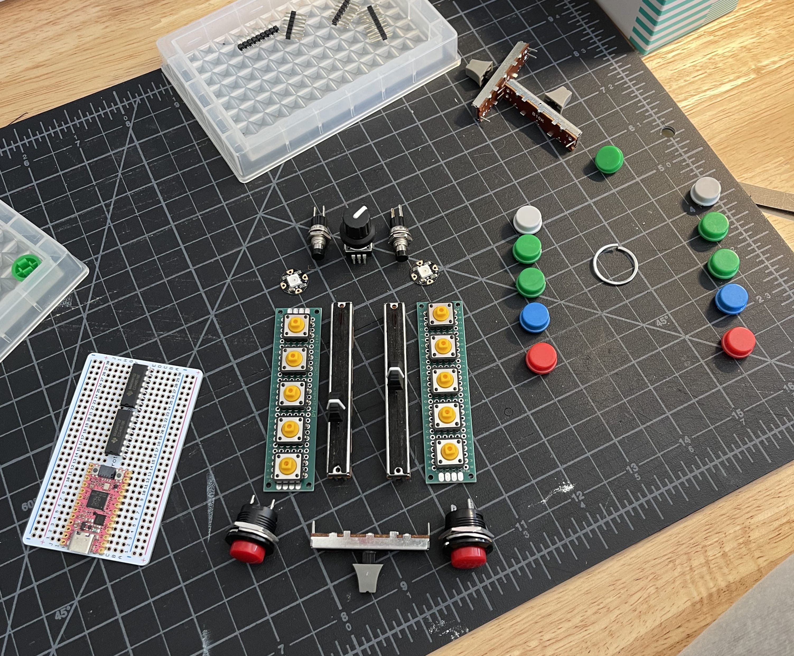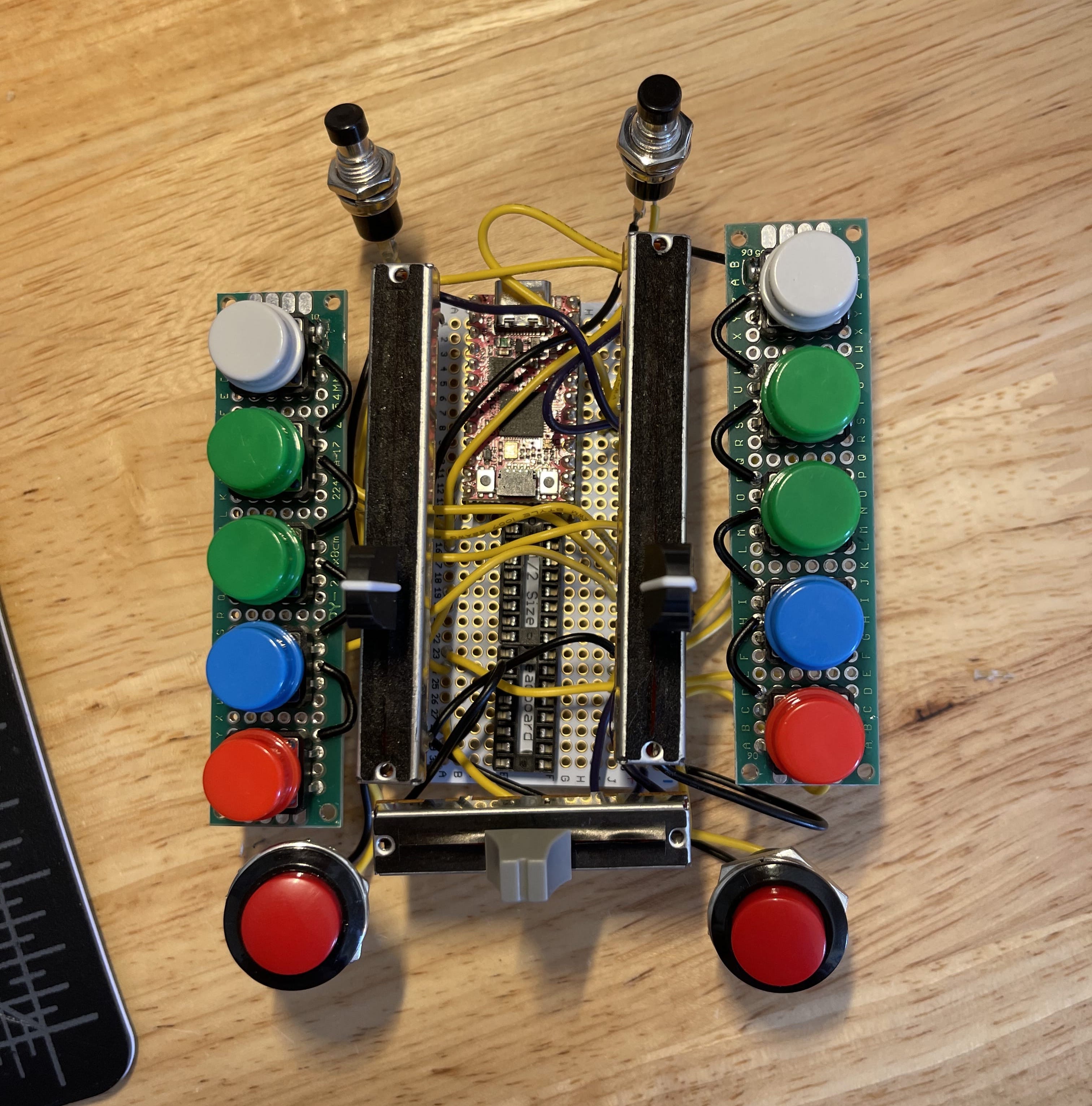 The microcontroller here is an Adafruit KB2040, which is designed for making keyboards and macropads. I think I programmed this in circuitpython, which was super easy and fun!