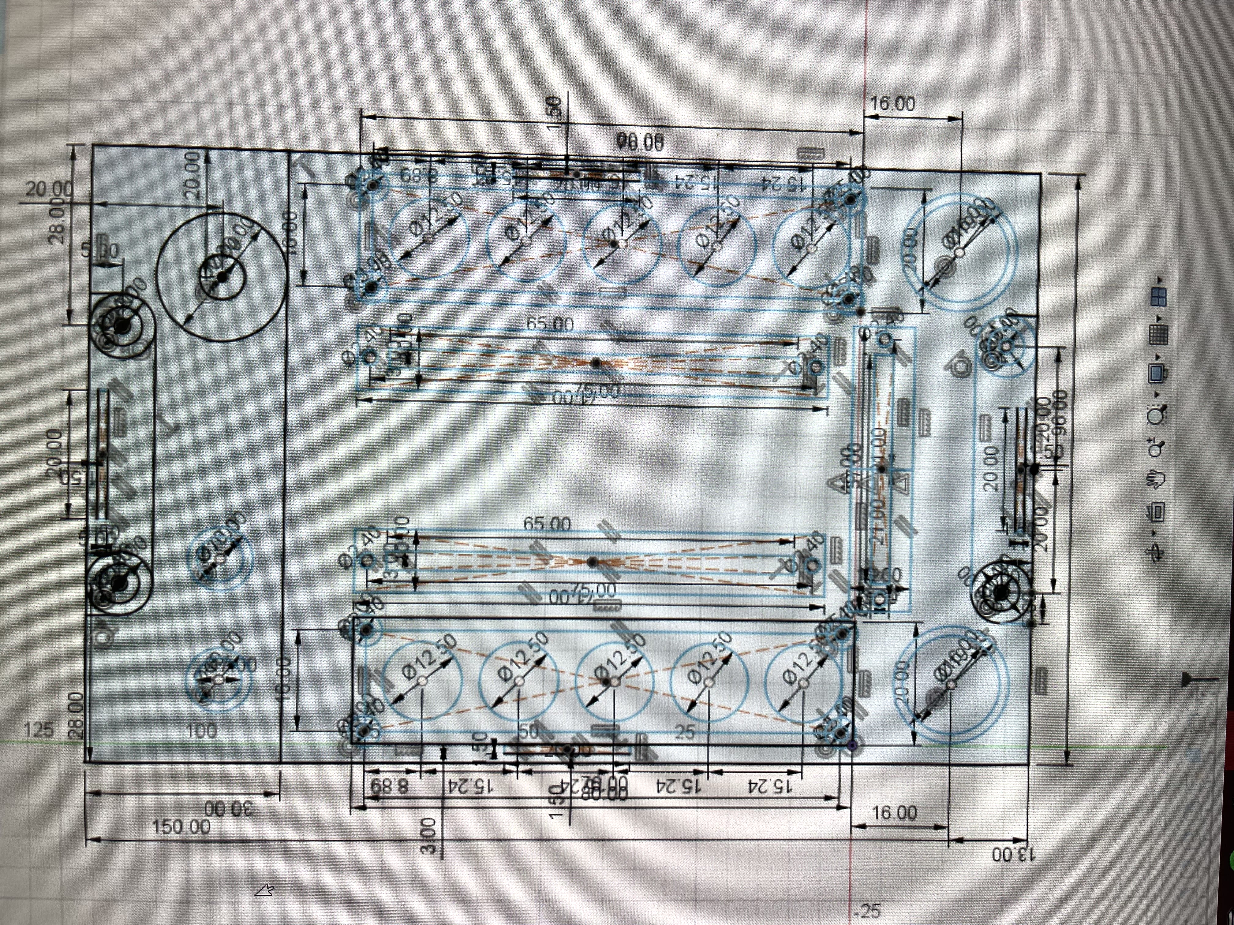I wound up printing this in two parts: a solid bottom with a bolt-on top panel printed in white so the lights can shine through from behind. I hadn't yet learned about heat-set threaded inserts, so I designed channels into the bottom part of the enclosure so I can use bolts and nuts.
