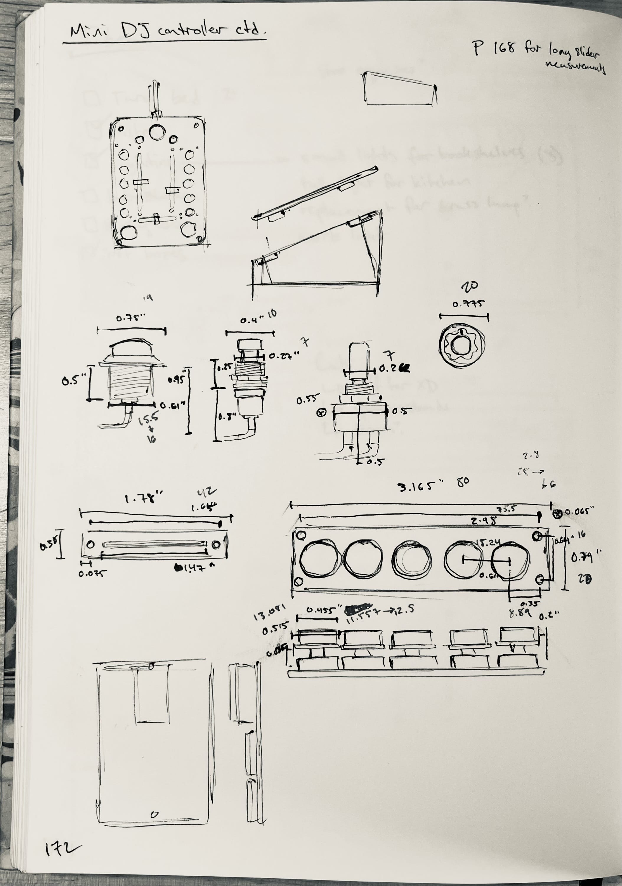 When I'm designing a device like this, I usually go through many iterations of the arrangement of the physical interface components. I have a lot of DJing experience myself, so I had some familiar patterns to draw on, but it took a while to find the right balance of conciseness, compactness, and flexibility.