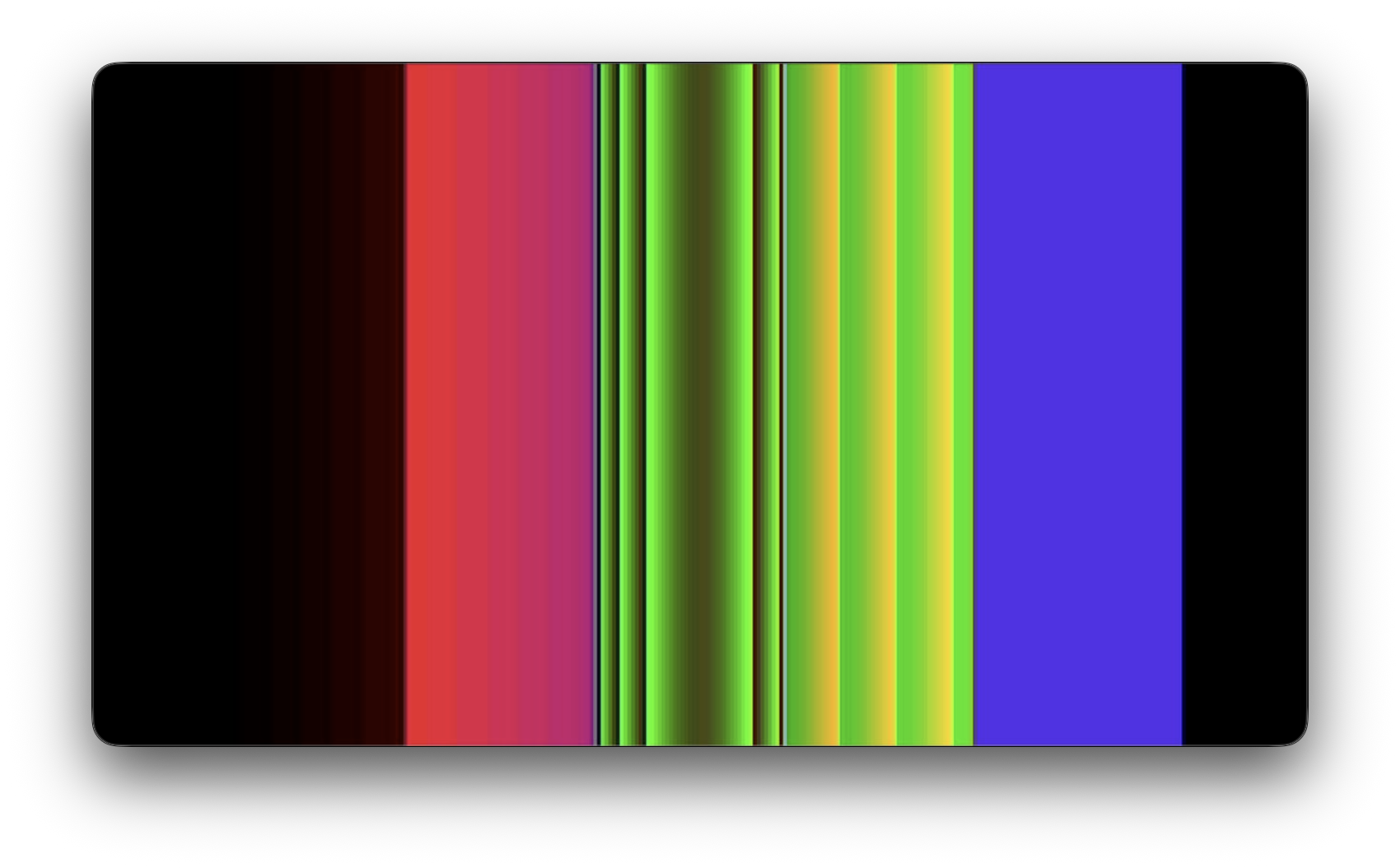 Overlapping sine waves in the R, G, and B channels with controllable frequency, amplitude, phase, and offset.