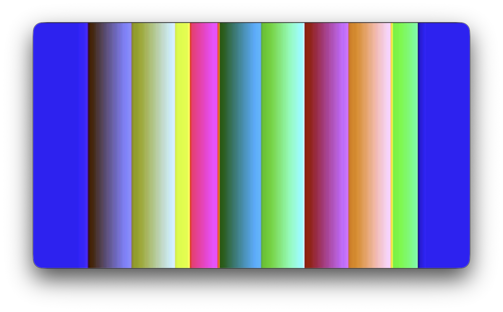Overlapping sawtooth waves in the R, G, and B channels with controllable frequency, offset, min, and max.
